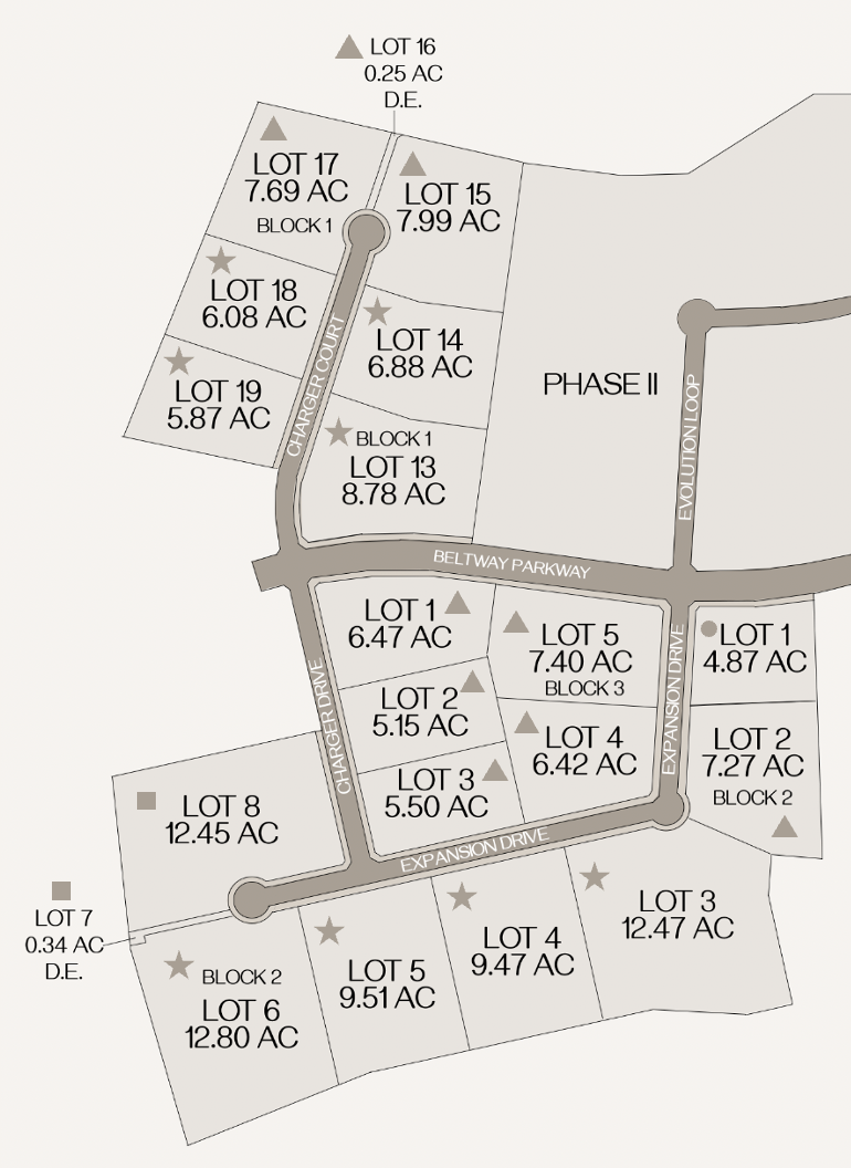 Phase III of North Webb consists of platted lots equipped with all utilities, including electricity, water, and sewer. The park also features concrete intersections and cul-de-sacs, as well as street overhead lighting.